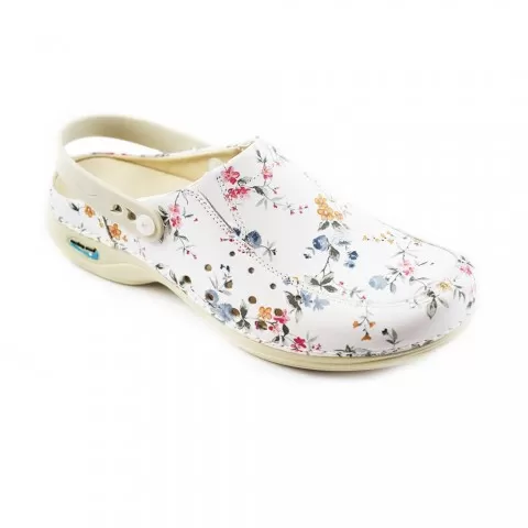 Saboti medicali din piele naturala, lavabili, cu bareta Nursingcare Wash'Go Berlin, Flower 01