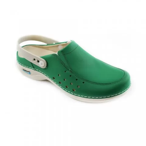 Saboti medicali din piele naturala, lavabili, cu bareta Nursingcare Wash'Go Berlin, verde