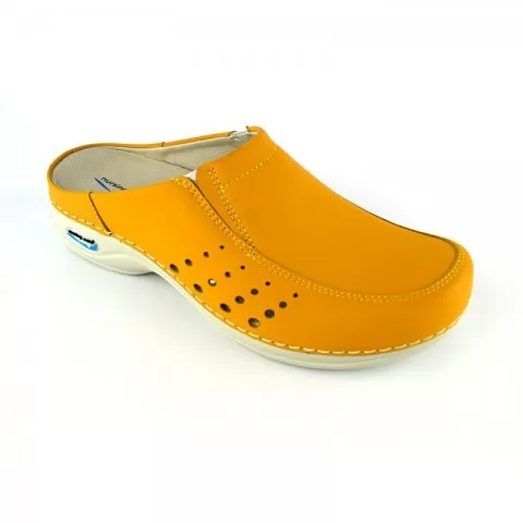 Saboți Wash'Go gama Berlin, muștariu - wash'Go este o încălțăminte pentru uz profesional, cu un aspect elegant, realizată din materiale rezistente la uzură. Talpa ușoară și flexibilă din poliuretan asigură un confort optim pe tot parcursul zilei datorită formei ergonomice.