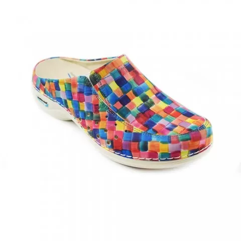 Saboți Wash'Go gama Berlin, pătrățele colorate - wash'Go este o încălțăminte pentru uz profesional, cu un aspect elegant, realizată din materiale rezistente la uzură. Talpa ușoară și flexibilă din poliuretan asigură un confort optim pe tot parcursul zilei datorită formei ergonomice.