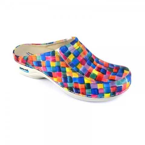 Saboți Wash'Go gama Paris, pătrățele colorate - wash'Go este o încălțăminte pentru uz profesional, cu un aspect elegant, realizată din materiale rezistente la uzură. Talpa ușoară și flexibilă din poliuretan asigură un confort optim pe tot parcursul zilei datorită formei ergonomice.