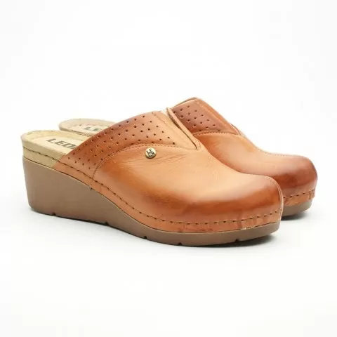 Saboți medicali Leon 1002, de damă, din piele, maro - saboții Leon sunt recomandați pentru activități profesionale desfășurate în clinici private, spitale, centre de îngrijire medicală sau saloane de coafură și centre estetice, în industria farmaceutică, industria alimentară, horeca, servicii de curățenie, grădinițe și nu numai, respectând standarde ridicate de calitate.