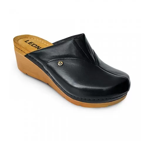 Saboți medicali Leon 1002, de damă, din piele, negru - saboții Leon sunt recomandați pentru activități profesionale desfășurate în clinici private, spitale, centre de îngrijire medicală sau saloane de coafură și centre estetice, în industria farmaceutică, industria alimentară, horeca, servicii de curățenie, grădinițe și nu numai, respectând standarde ridicate de calitate.