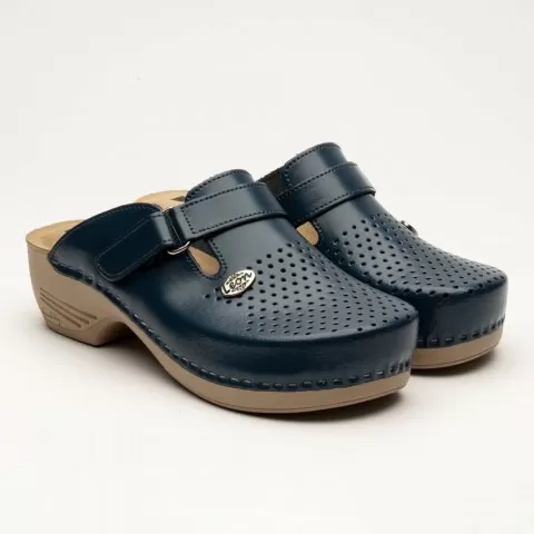 Saboți medicali Leon 159, de damă, din piele, bleumarin - saboții Leon sunt recomandați pentru activități profesionale desfășurate în clinici private, spitale, centre de îngrijire medicală sau saloane de coafură și centre estetice, în industria farmaceutică, industria alimentară, horeca, servicii de...