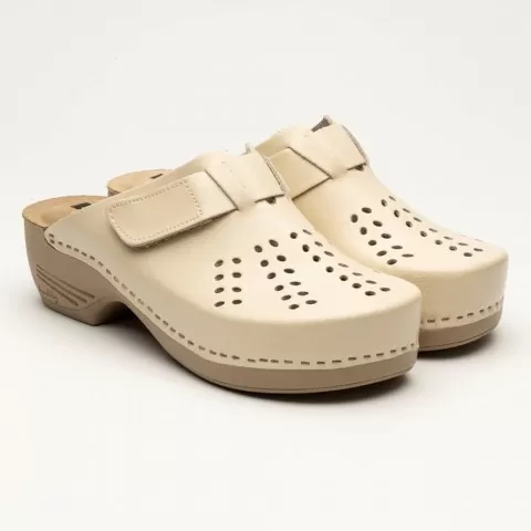 Saboți medicali Leon 161, de damă, din piele, bej - saboții Leon sunt recomandați pentru activități profesionale desfășurate în clinici private, spitale, centre de îngrijire medicală sau saloane de coafură și centre estetice, în industria farmaceutică, industria alimentară, horeca, servicii de curăț...