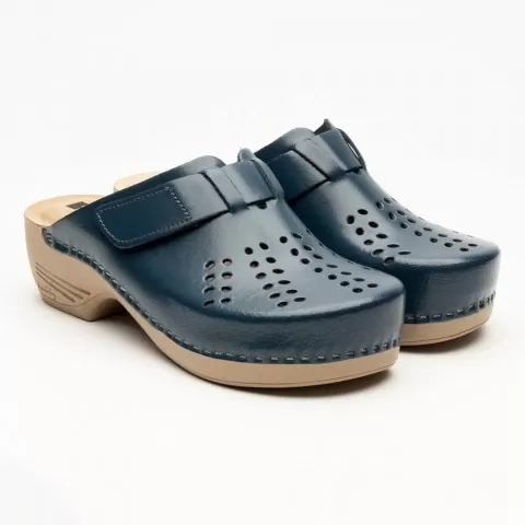 Saboți medicali Leon 161, de damă, din piele, bleumarin - saboții Leon sunt recomandați pentru activități profesionale desfășurate în clinici private, spitale, centre de îngrijire medicală sau saloane de coafură și centre estetice, în industria farmaceutică, industria alimentară, horeca, servicii de...