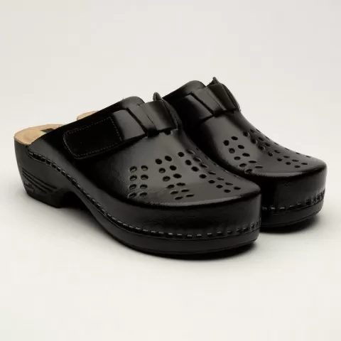 Saboți medicali Leon 161, de damă, din piele, negru - saboții Leon sunt recomandați pentru activități profesionale desfășurate în clinici private, spitale, centre de îngrijire medicală sau saloane de coafură și centre estetice, în industria farmaceutică, industria alimentară, horeca, servicii de cur...