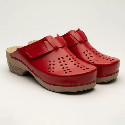 Saboți medicali Leon 161, de damă, din piele, roșu - saboții Leon sunt recomandați pentru activități profesionale desfășurate în clinici private, spitale, centre de îngrijire medicală sau saloane de coafură și centre estetice, în industria farmaceutică, industria alimentară, horeca, servicii de curățenie, grădinițe și nu numai, respectând standarde ridicate de calitate.