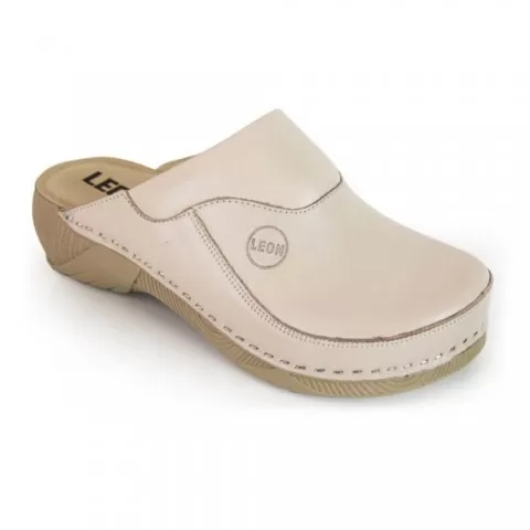 Saboți medicali Leon 3100, de damă, din piele, roz pudrat - saboții Leon sunt recomandați pentru activități profesionale desfășurate în clinici private, spitale, centre de îngrijire medicală sau saloane de coafură și centre estetice, în industria farmaceutică, industria alimentară, horeca, servicii de curățenie, grădinițe și nu numai, respectând standarde ridicate de calitate.
