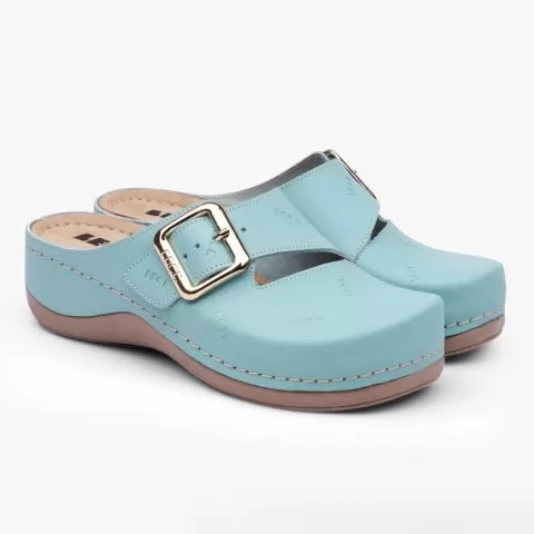 Saboti medicali Leon 933 Bakkar, de dama, din piele, turcoaz mat