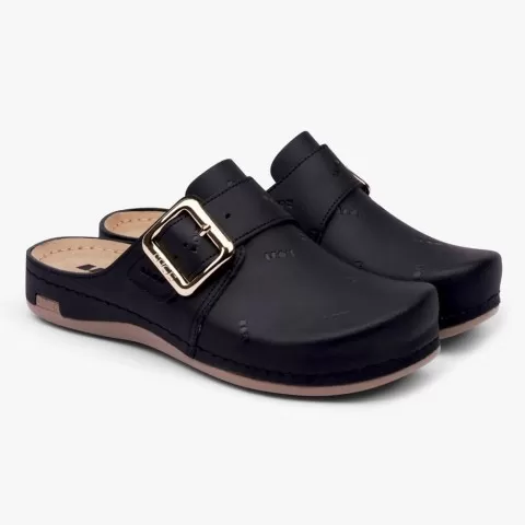 Saboți medicali Leon 971 Bakkar, de damă, din piele, negru mat - saboții Leon sunt recomandați pentru activități profesionale desfășurate în clinici private, spitale, centre de îngrijire medicală sau saloane de coafură și centre estetice, în industria farmaceutică, industria alimentară, horeca, servicii de curățenie, grădinițe și nu numai, respectând standarde ridicate de calitate.