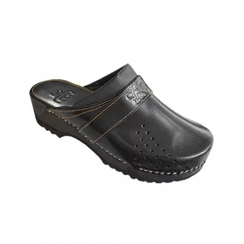 Saboți medicali unisex, din piele, cu talpa lemn și cauciuc, Leon PG500, negru - saboții Leon sunt recomandați pentru activități profesionale desfășurate în clinici private, spitale, centre de îngrijire medicală sau saloane de coafură și centre estetice, în industria farmaceutică, industria alimentară, horeca, servicii de curățenie, grădinițe și nu numai, respectând standarde ridicate de calitate.