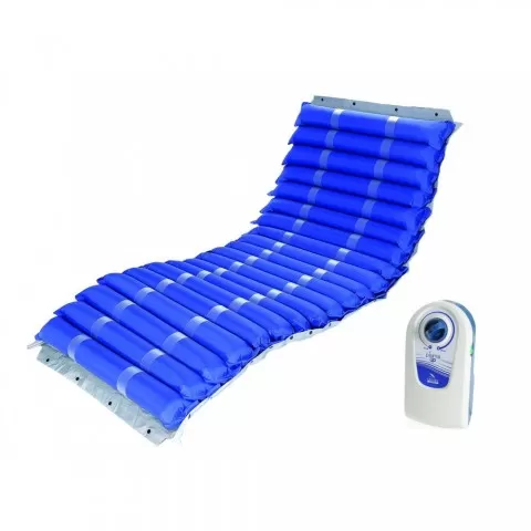 Saltea antiescare cu compresor pentru escare în stadiul II - Moretti LAD463 Salteaua antiescare cu 20 celule interschimbabile și compresor cu presiune reglabila, previne aparitia escarelor din stadiul al 2-lea care are ca principal semn prezenta unei rani deschise, cu o ulceratie superficiala, de culoare rosie Cu ajutorul compresorului salteaua antiescare realizeaza o alternare a punctelor de contact cu pielea, facand un masaj bland care permite o mai buna circulatie a sangelui și o buna oxigenare a tesuturilor, prevenind astfel formarea escarelor din stadiul 2.