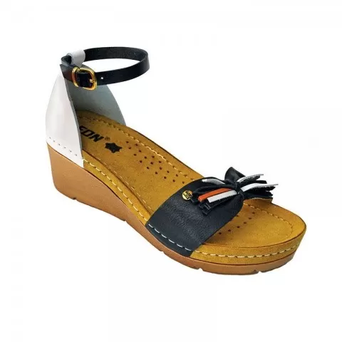 Sandale damă, de vară, din piele, Leon 1025, alb/negru - sandalele de damă Leon sunt potrivite în garderoba feminină. Sandalele de vară Leon sunt confecționate din piele naturală 100% atât la interior, cât și la exterior, oferind confort ridicat și menținând picioarele uscate în zilele călduroase. Talpa interioară are gel cu memorie și mențin confortul chiar și atunci când petreci multe ore în picioare sau mergi distanțe mari pe jos.