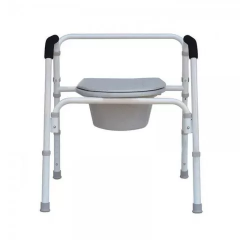 Scaun WC de camera 4 în 1, pliabil - YJ-7100D Scaun WC de camera realizat pe cadru din otel vopsit de culoare alba, picioare reglabile în înălțime, colac confortabil din plastic, manere și pufere cauciuc moi și sigure, galeata din plastic cu capac detașabil, montare și demontare ușoară Simplu și ușor de utilizat, comod, fiabil și un raport calitate-preț excelent.