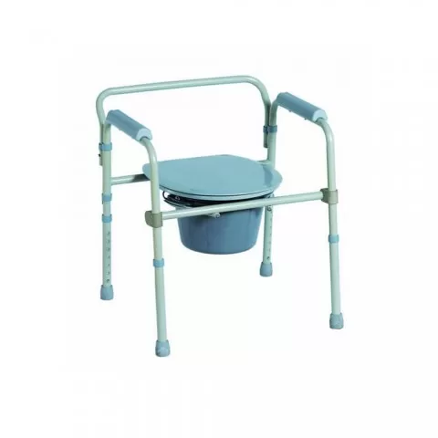 Scaun WC de camera pliabil, functie 4 în 1, din otel - AT51026 Scaunul WC de camera este realizat pe cadru din otel vopsit, cu picioare reglabile în înălțime, pliabil, prevăzut cu galeata și capac din plastic, manere și pufere din cauciuc moi și sigure - antialunecare Functia 4 în 1: functie WC, scaun de camera, scaun de siguranță, scaun pentru dus.