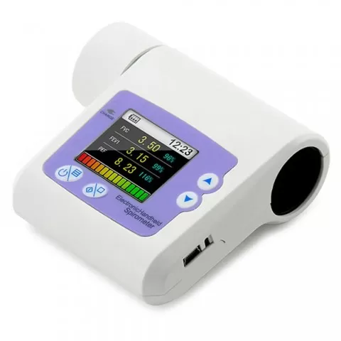 Spirometru digital cu ecran LCD - Contec SP10 este un produs medical, recomandat pentru utilizare profesională conform destinației sale. Include spirometrul este un dispozitiv portabil, de buzunar.