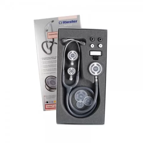 Stetoscopul Riester tristar este un stetoscop de înaltă calitate, cu trei capsule duble de dimensiuni diferite pentru adulți, copii și nou-născuți, și este cel mai potrivit pentru o auscultatie perfecta în toate tipurile de frecventa. Performanța acustică îmbunătățită considerabil în toate domeniile de aplicare.