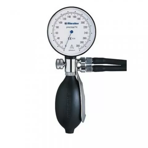 Tensiometru mecanic Riester® precisă N, carcasa cu constructie robusta, din platic și metal, cu 2 conectori metalici, pentru schimbul simplu și rapid al manșetei. Supapa de aer cu reglaj fin, microfiltru la intrarea in manometru pentru protectia sistemului de măsurare. Maner in forma de lingura din ...