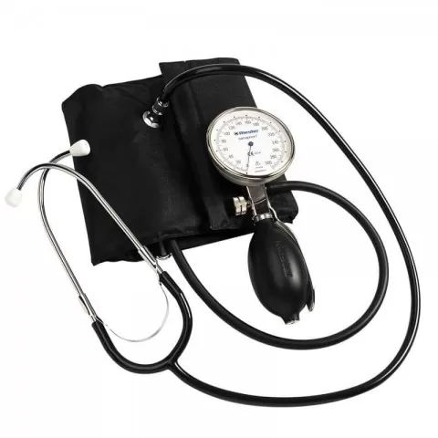 Tensiometru mecanic Riester sanaphon cu stetoscop inclus, extralarge - RIE1442-142: Un tensiometru clasic pentru auto-măsurare precisă care are inclus un stetoscop (stetoscopul nu se poate folosi separat). Tensiometrul sanaphon garanteaza valorile exacte de măsurare chiar și pentru pacientii cu tulburări de ritm cardiac.