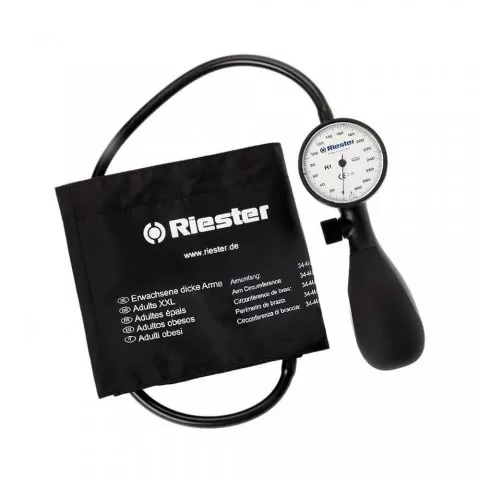 Tensiometru mecanic Riester Shock-Proof®, alb, manșeta cu închidere velcro, marime extra-large: Precizie exactă care dureaza o viață! Tensiometrele mecanice clasice sunt sensibile la șocuri iar precizia lor poate fi afectata dupa un impact sau o cadere la podea, astfel incat nu mai pot fi utilizate. Dar tensiometrul R1 Shock-Proof® este rezistent la șocuri, până la max. 120 cm.