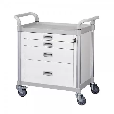 • Troliu cu top din PP ușor de curățat și rezistent, cu 4 sertare pentru medicamente cu incuiere centralizata. Structură din aluminiu este rezistentă la coroziune, lavabilă, ușor de curățat și dezinfectat.