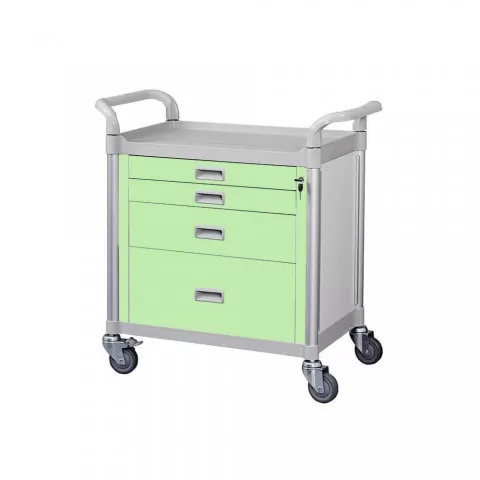 • Troliu cu top din PP ușor de curățat și rezistent, cu 4 sertare pentru medicamente cu incuiere centralizata. Structură din aluminiu este rezistentă la coroziune, lavabilă, ușor de curățat și dezinfectat